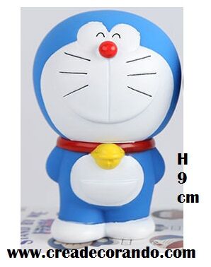 Statuina in plastica a tema Doraemon, h. cm 9,5. Prodotto decorativo, rivestire con carta stagnola, ecc.. la parte a contatto con gli alimenti.
