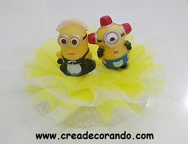Statuina in plastica a tema Minions, cm 15 x 7 circa, con base in plastica adatta al contatto con gli alimenti
