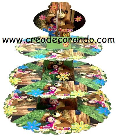 Alzata per 24 muffin, dolci ecc.. (3 piani in carta misura 16/22,5/30 cm) fantasia come da foto, altezza totale 40cm