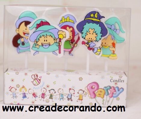 Confezione da 5 candele in cera su stecco a tema Streghe - magia, fantasia come da foto.