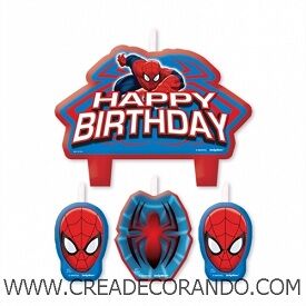 Confezione da 5 candele in cera su stecco a tema Spiderman, fantasia come da foto